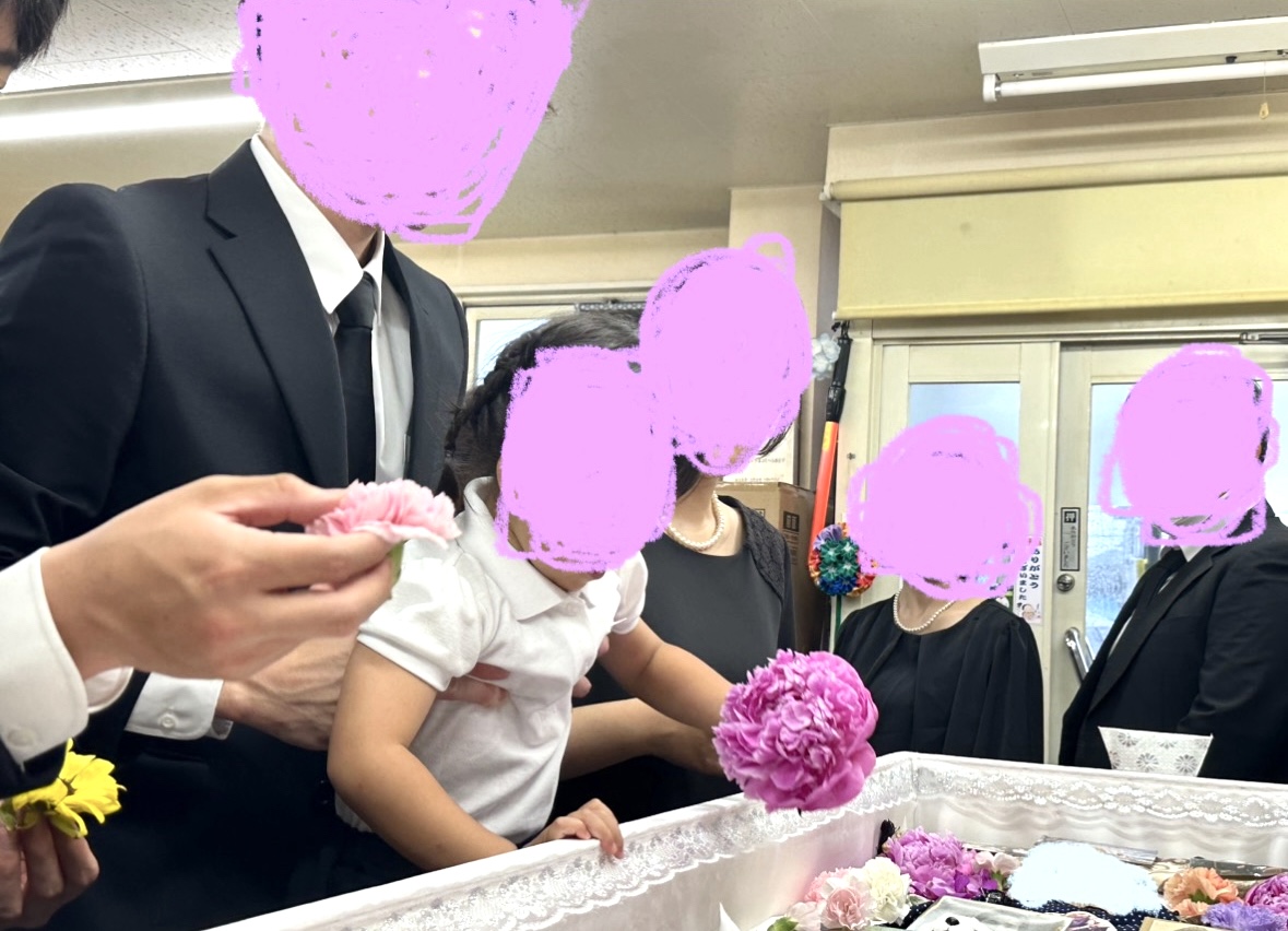 お子様、お孫さん、ひ孫さん、みんなでお花や思い出の写真を入れてお見送りしました。