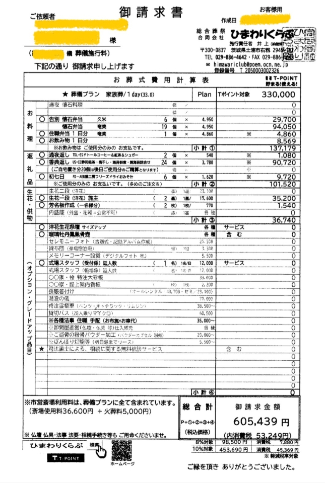 総額表示の葬儀事例