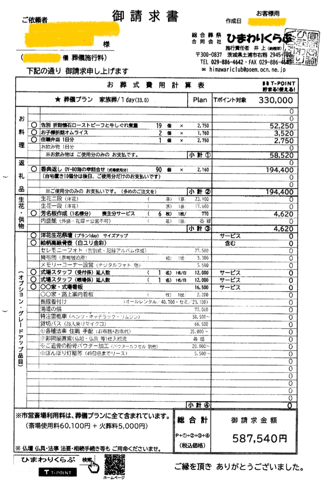 【土浦市営斎場 一般葬(一日葬) 総額587,540円】 [葬儀事例038]
