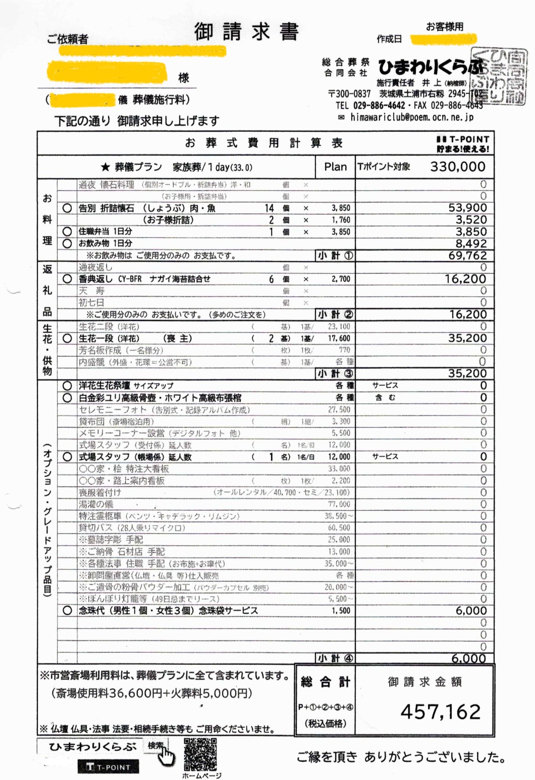 総額表示の葬儀事例