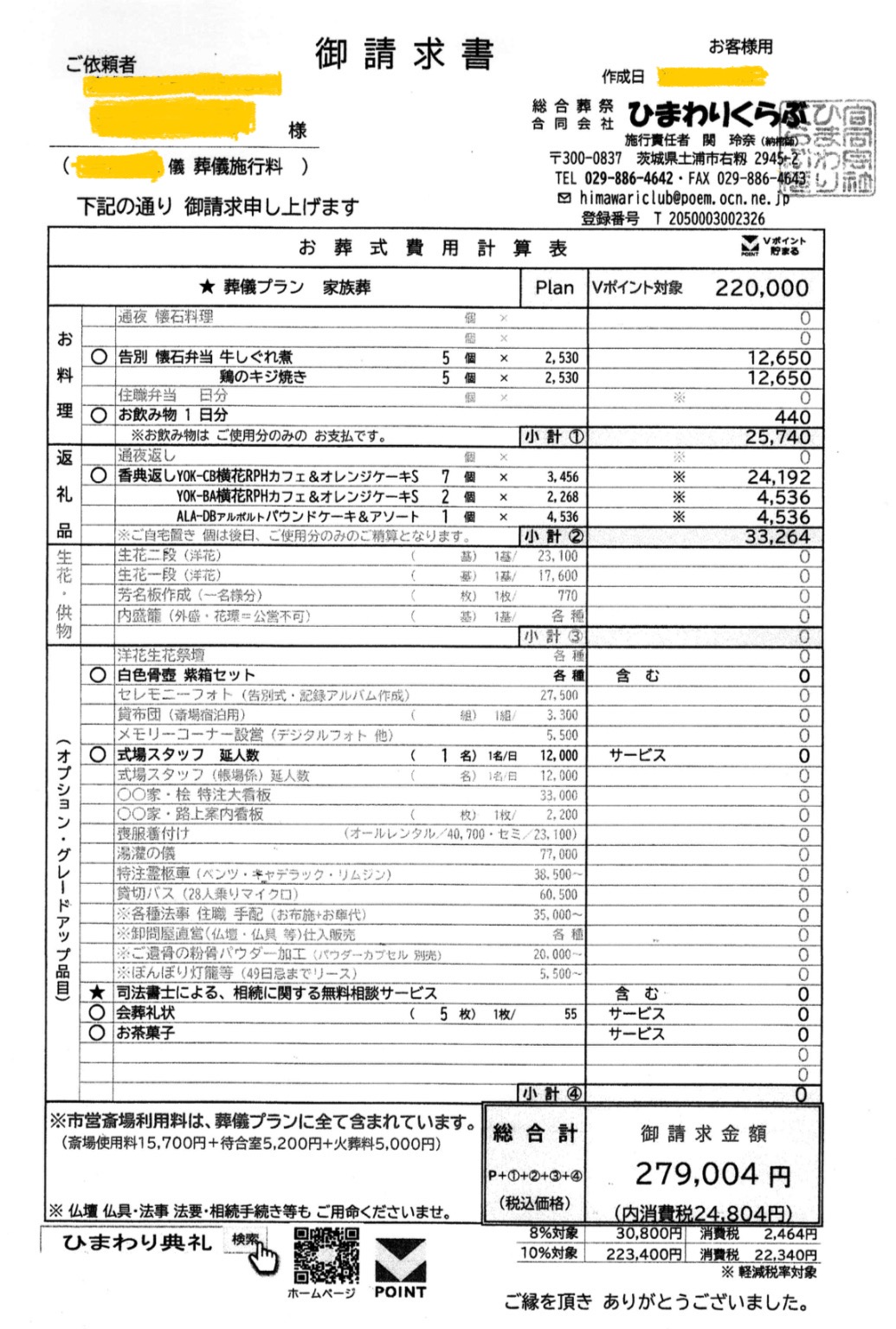 総額表示の葬儀事例